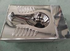 1、水冲蹲便器采用304不锈钢通过油压机压铸成盆、板,再通过焊接成形。水冲蹲便器光亮不退色、不磨损,清洗方便。