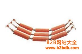吊挂托辊组的结构特点是其构成托辊之间为柔性联接,托辊组通过抓手可与槽钢、钢管等刚性机架挂接,也可以与钢丝绳柔性机架挂接。抓手可以是刚性的,也可以是柔性的,其结构不同,成弧特点也不同。承载托辊一般三至五节,节数越多,柔性越好,成弧性也就越好。因吊挂托辊组因具有的 结构,由其作为支撑部件的带式输送机就具有不同于普通 固定式带式输送机的特点。