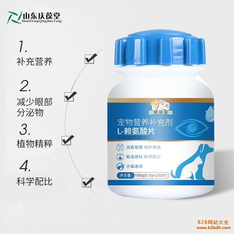 宠物营养补充剂L-赖氨酸片OEM贴牌定制代加工山东麒恒宠物山东麒恒宠物有限公司位于孔孟之乡、礼仪之邦、曾子故里、运河文化的山东济宁,是一家以现代技术宠物营养补充剂生产的企业,公司形成了宠物营养补充剂的科研、生产、销售为一体的经营模式。